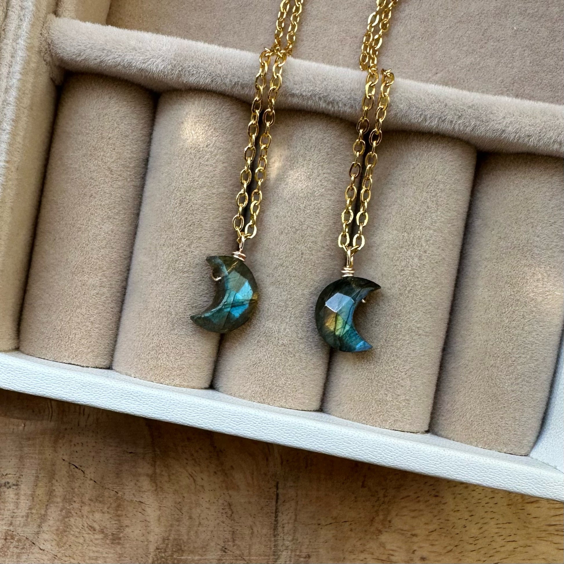 Versione dorata: collane realizzate a mano con pietra: labradorite e filo in rame placcato, catenina in acciaio dorato.